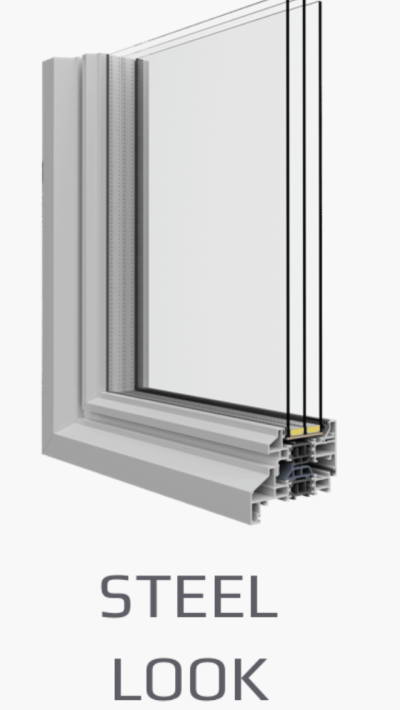 - Populair Steel Look-profiel: Veel gevraagd vanwege de stijlvolle uitstraling en een bouwdiepte van 105 mm.
